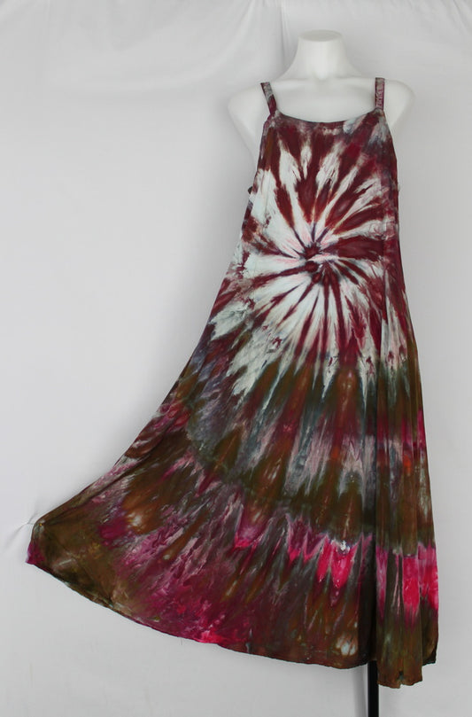 Long rayon sundress - size Medium - Raspberry Brownie spiral