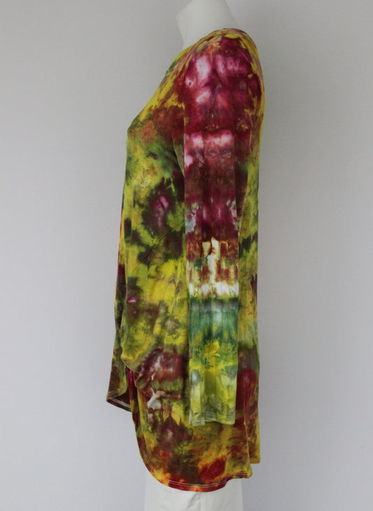 Knot front tunic long sleeve size Large - Electric Sun crinkle