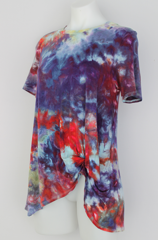 Knot front tunic short sleeve size Small - Van Gogh's Irises crinkle